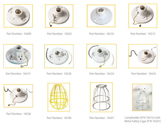 UV resistant phenolic Lampholders will not fade or discolor.Optional Plastic and Metal Safety Cages fit all Lampholders.